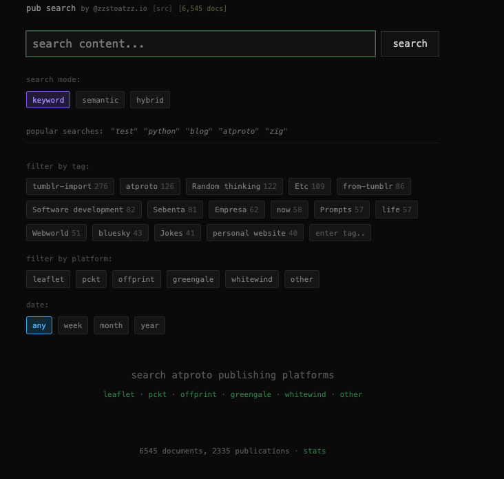 that is, a site offering keyword / semantic / hybrid search of all* standard.site records and the publications that they come from