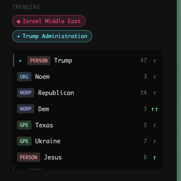 i am not an expert in NLP and so practically speaking i outsource a meaningful portion of my understanding of details of these tools to claude, which could be (and someday will be) a whole post (tldr there are higher-level objectives i make coral in service of, like having a trending topics API for the sake of other systems).